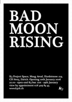 Bad Moon Rising features the work of 13 artists working in a variety of media. The show explores themes of death and destruction. The works included contain a sense of foreboding or impending doom, or else attempt to deal with the aftermath of disaster.
