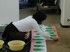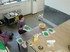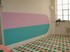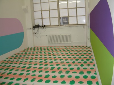 At the beginning of every floorpiece there is always a process of occupation. It opens ones eyes to disover a space and the already existing elements, but it will also strongly change the atmosphere of the space . Beyond this, there are different stories to be told, depending on the specific space. Relateing to K3, there are several ones to be told: The first fairytale is about Porridge, a story my mother told me again and again. A very particular little magic pan could cook infinitly big quantities of porridge. But to start the cooking or to stop it , one has to say a little spell. Once the little girl forgot to say the spell and the pan cooked on and on, and just this seems has happened at K3: All the floors are covered with the overwelming pink, white, green pattern, not much different from a spread soup. What I like in this comparison is the changing of something nice and friendly into something threatening, unpleasant. And there we are at the second story: It is springtime, all is flowerishing and growing. Often, while making the piece, I had to think of pollen, seeds etc. Certainly the connection with spring happens through the chosen colours. I am strongly allergic and dont support flowers nor pollen and all the other beautiful things, which I was looking forward to during the winter. Again something tender and lovely turns into something dangerous and evil. One doesn't see the danger which is hidden in a thing. The third story is more a practial story of the making of the piece and explains why a thing looks like this and not like that: I wanted to cover the whole floor at K3, but knew I wouldnt have much time and little budget. How would I make such a huge piece in a very short time and with only alittle money. Have a look at PLOPP! _________