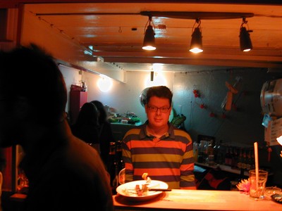 Gallerist Hubert Bächler helping out at the bar -Thanks Hubert!