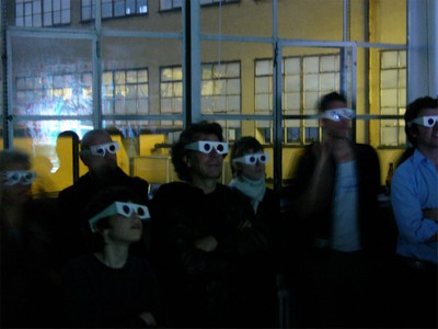 7 pm: dawn, lightinstallation and wallpainting from Boris Rebetez 8:30: screenings from Roman Keller (3-D Pictures), Christina Hemauer (Video) and Micc dell'Ambrogio (live electronic guitar sound) 11 pm: Juciy Jugs DJ-Set